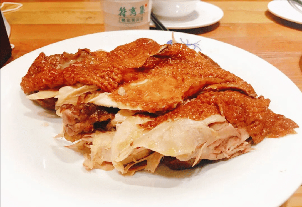 活雞應驗收檢疫合格。經飲水、休息後,快速進行一刀宰殺。血要放凈,隨殺隨燙,凈身後雞體呈肉白色。造型渾圓飽滿,經涮凈、濕晾、塗飴糖稀、油炸,其外觀呈柿黃色或棗紅色。