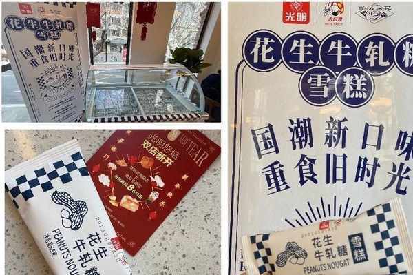 “百花牌花生牛軋糖”作為大白兔旗下糖果品牌,既傳承瞭牛軋糖的“年貨基因”,又沉淀瞭幾代人的春節祝福,是每個人兒時的寶貴回憶。光明乳業將花生牛軋糖從糖果領域拓展至冰品領域,是保持經典味道的同時,再造國貨新貌,以滿足新世代的需求。昨天下午,在光明悠焙武夷路店,“90後”徐小姐咬瞭一口花生牛軋糖雪糕,拍下瞭一張照片,發到瞭自己的微信朋友圈。“奶味很濃,裡面還有脆脆的花生碎,是花生牛軋糖的感覺!”