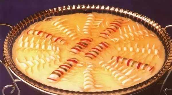 食用須知:豬黃管洗凈煮熟,擇去油脂,翻過來打上“蜈蚣”花刀,截成6厘米長段,放清湯裡煮熟入味,撈出備用;將蛋清5個加入等量的清湯攪勻,入籠蒸熟為芙蓉底子,將煮熟的黃管擺在底子周圍;將6條黃管抹入雞料子,粘上菜心、火腿絲、香菇絲入籠蒸熟擺放在底子中間;鍋放清湯燒開,調味去浮沫,澆入湯汁即成。
