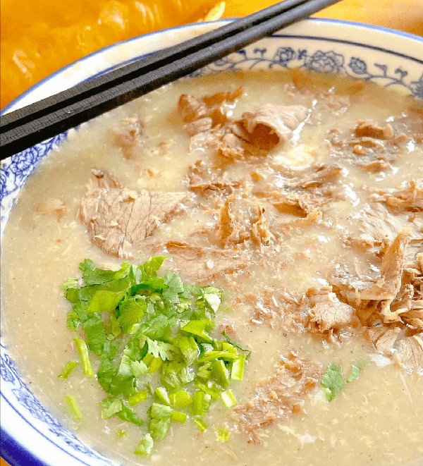 2。醬牛肉切片,蔥薑隨你切麼樣,麥仁煮爛後加入牛肉蔥薑。煮一會即可。