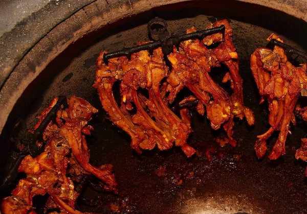 馕坑肉馕坑肉類似於烤羊肉,但是做法卻別具一格,這是埋在土坑裡烤制出來的,是新疆喀什的代表美食之一。制作馕坑肉,最重要是保證食材的新鮮度,一般是現殺羊肉,現做現賣。把處理好的羊肉,抹上醬料,放入馕坑之中,采用暗火的方式進行烤制,經過大火烤制,羊肉被烤熟,出鍋的瞬間鮮香四溢,吃的時候蘸上鹽巴,口感更加突出。
