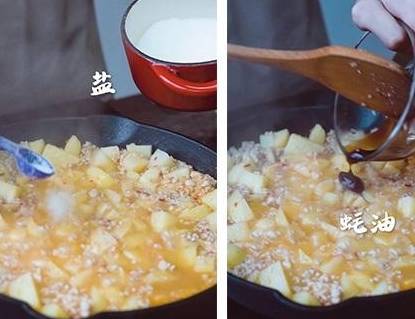 4.土豆煮軟瞭後,加入鹽,蠔油調味;