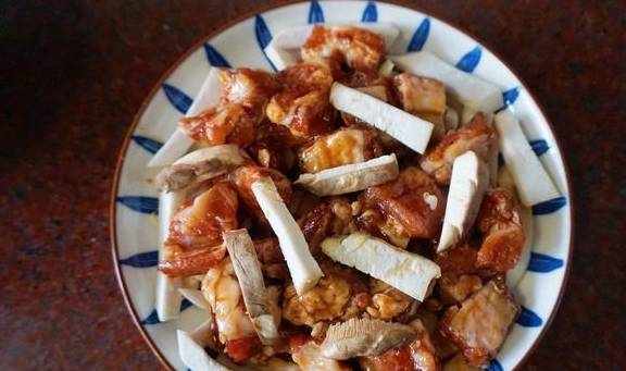 11、放入蒸好的排骨和杏鮑菇即可