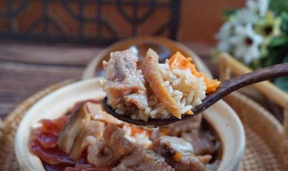 12、吃煲仔飯的時候可以用勺子攪拌均勻再吃,味道更香哦