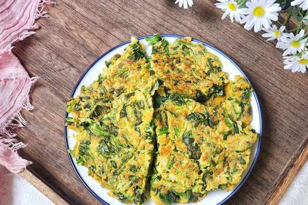 這樣美味的菠菜雞蛋玉米餅就做好瞭,非常的柔軟味香,配上牛奶、白粥等都非常不錯!