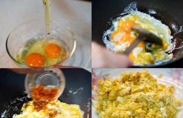 3.鍋裡熱一些油,將雞蛋倒入鍋裡,然後迅速搗碎。