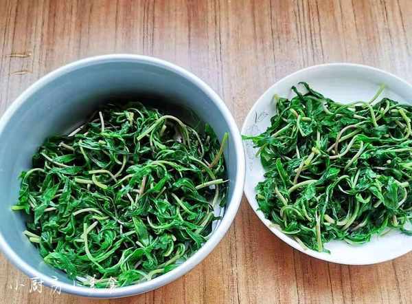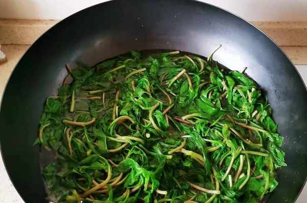 2.焯水時間不宜長,葉子變軟後幾秒即可撈出來,放入涼水中浸泡,這樣可以避免葉子發黃。