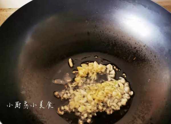 步驟四:鍋裡放入適量油,放入蒜末炒香。