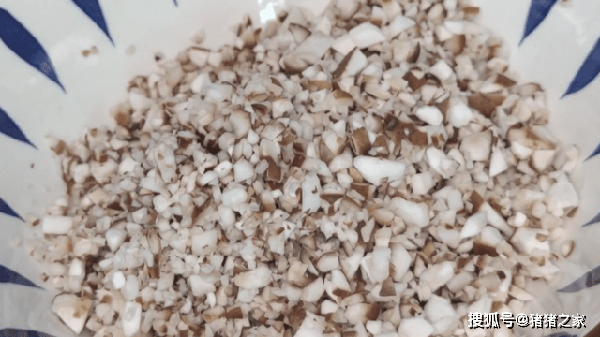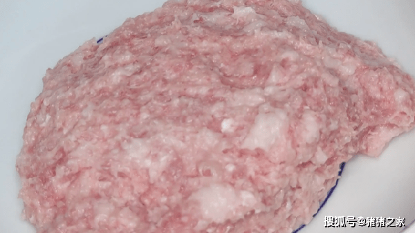1.準備一塊五花肉,把豬皮片下來,然後把豬肉切成片,再剁成肉餡,不用剁得太細,帶點顆粒感最好,剁好後放入碗中備用。