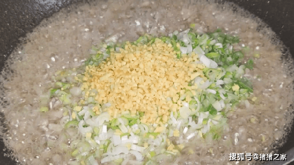 3.把鍋燒熱,倒入適量的油,開小火把肉末倒入鍋中炒散炒香,把豬肉多餘的油脂炒出來,接著加入一些高度白酒,去除豬肉的腥膻味。沒有白酒可以加料酒或黃酒都可以。豬肉炒出油後倒入切好的蔥薑末,繼續煸炒出蔥香味。