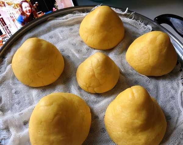 將小塊面團搓成球狀,再用手按扁成窩窩頭的形狀。