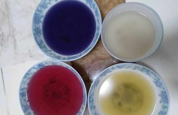 三:每個顏色分別下糯米泡,浸泡一夜。