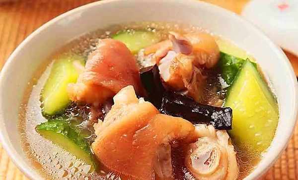 豬蹄塊250克、黃瓜塊150克、靈芝10克,高湯適量