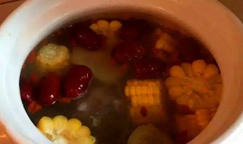 (1)鍋中註水,放入玉米塊、胡蘿卜塊、藕塊、香菇、枸杞、大棗,加蓋煮至七分熟。