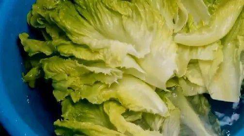1.首先摘好兩顆新鮮的生菜,用刀將它們的根部切掉,再生菜一片片的取下;準備一盆清水,把生菜放入盆裡清洗,盡可能的多洗幾次,去除雜質,洗凈後瀝幹水分備用。