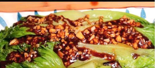 5.最後將煮好蒜蓉汁均勻的淋在擺盤的生菜上面,這樣一道脆美多汁的蒜蓉蠔汁生菜就做好瞭。