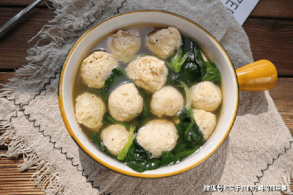 2、鍋裡加水燒開,把攪好的山藥雞肉泥放在手心,從虎口處擠出丸子,用勺子刮掉後放入鍋中煮一會兒,用勺子撇掉浮沫,煮至全部浮起後放入菠菜,加入少量食鹽、黑胡椒粉、香油調味,菠菜煮熟後即可出鍋。