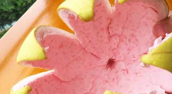 1,把柚子皮的外皮,也就是把黃色那層皮削掉,留下白色那層。黃色那層有辛辣味,苦澀苦澀的,也隻有白色那層才能吃得下瞭,所以我們隻需要保留白色那層瓤就可以瞭。