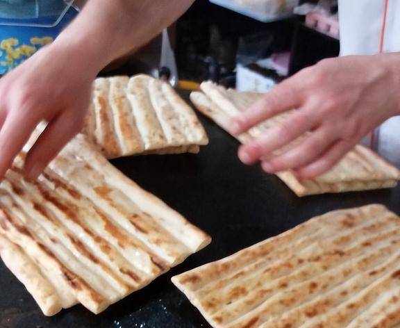 除瞭上面介紹的圓形煎餅,很多餐廳也做這種方形煎餅