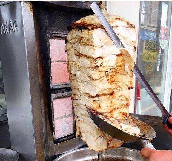 正在切烤的師傅土耳其卷餅衍生食品——漢堡肉