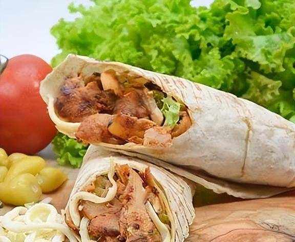 土耳其雞肉卷餅,通常搭配泡菜,番茄醬