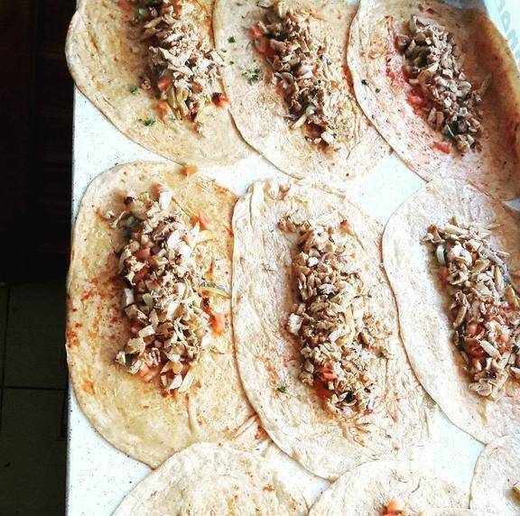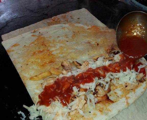 做這種burrito,首先需要把煎餅烤好,然後把切好的烤雞卷進去。現在很多餐廳也在漢堡裡做三明治,或者直接把烤餅和肉放在盤子裡。下面就來介紹