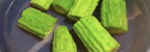 2.苦瓜洗幹凈,去頭去尾,然後切成等分,這樣切是為瞭更方便釀香蕉,而且容易去芯。