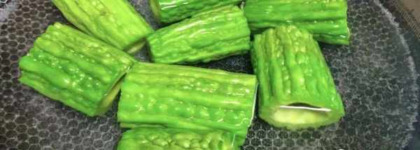 4.放油可以讓苦瓜顏色保持翠綠不變色,煮好後,把苦瓜撈出來當冷水裡面冷卻。