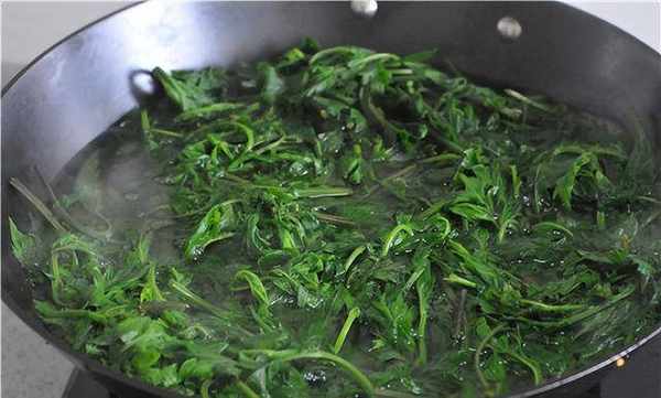 燒開一鍋水,將艾草枝葉都放入開水鍋中,煮兩分鐘。