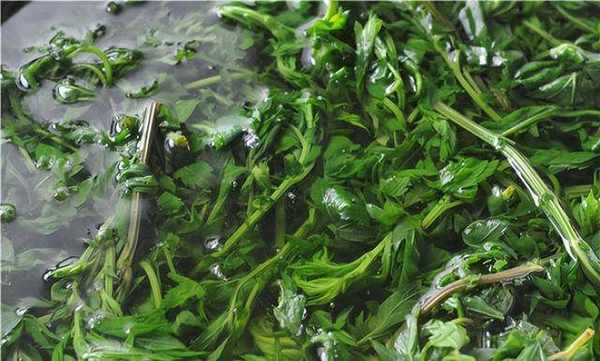新鮮的艾葉清洗幹凈,,清明前的艾草非常嫩,枝葉都可以吃,如果是夏秋天的話,咱們就隻能采摘葉子和嫩尖。