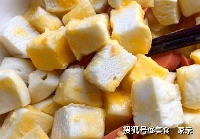 我們隻需要準備饅頭,香腸,雞蛋,鹽,孜然粉和辣椒粉就可以,首先我們先將吃不完的剩饅頭切成丁狀,然後再將香腸切成片狀,放入碗中備用,之後再將雞蛋打入饅頭和香腸碗中,攪拌均勻,讓饅頭全部包裹上一層蛋液,鍋中加入適量的油,油溫達到7成熱的時候。
