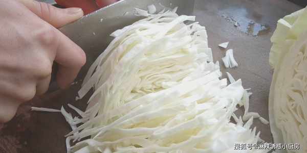 第二步:包菜去瞭老葉後,洗凈切絲,我準備的這個包菜有點大,所以今天我切瞭大半個,其實也不算多的,包菜切的時候看著好像很多,熟瞭後其實沒多少的。