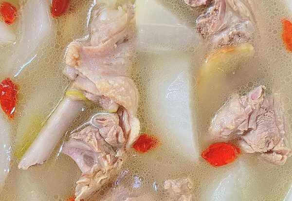 3、接著放入白蘿卜繼續燉煮半個小時。燉煮好瞭之後,加入食鹽和雞精調味,煮入味後撒上枸杞子即可出鍋開吃。