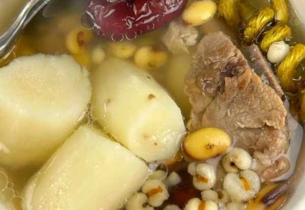 4、時間到,再放入山藥和紅棗,繼續燉煮半個小時。燉煮好瞭之後,就加入適量的食鹽調味,攪拌均勻煮入味就可以出鍋開吃瞭。