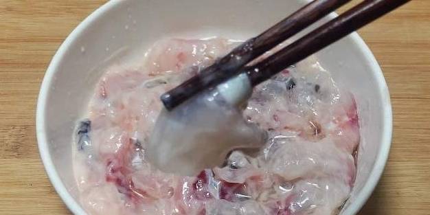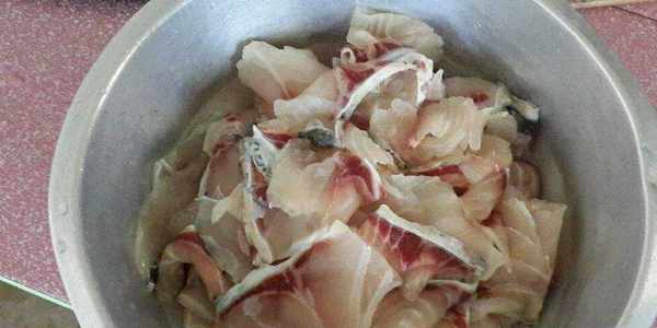 去掉水分的魚片然後就可以醃制瞭,而醃制的是最為重要的工序,直接影響到做出來的魚片是否嫩滑。