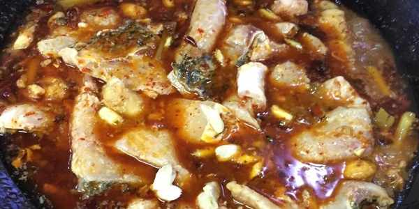 第3步,煮魚片。煮魚片下鍋這一步最重要的就是火候的控制,首先鍋中的佐料水要煮開,再把火力調至最小,然後把魚片慢慢加入到鍋中攤開,加入魚片後不要去攪動,把火力調大,觀察鍋中魚片的狀態,魚片定型後用鍋鏟慢慢攪動,晃動鍋具,魚片完全熟後立即撈出,魚片剛好熟即可,魚片煮久口感會變差。