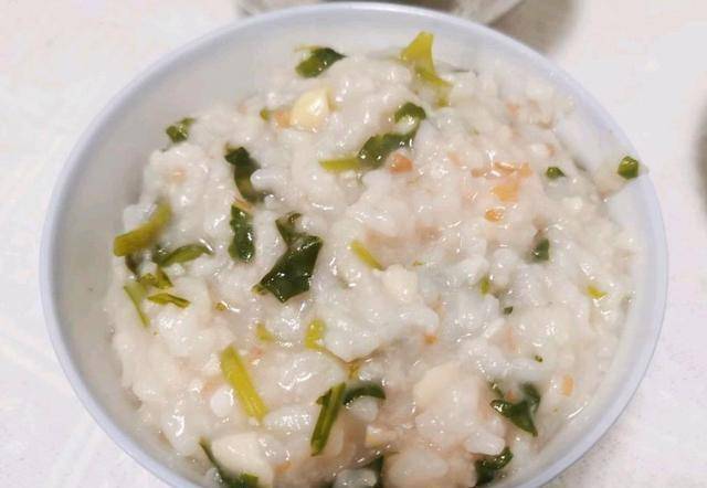 3,大米煮熟後,把切碎的芥菜末放進去,加一點鹽調味,再煮五六分鐘就可以瞭,然後燜十分鐘即可出鍋食用。
