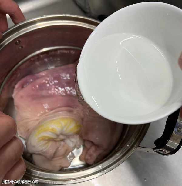最後聞著豬肚的基本上沒有異味瞭,洗出來的水也清瞭,這樣就洗好瞭