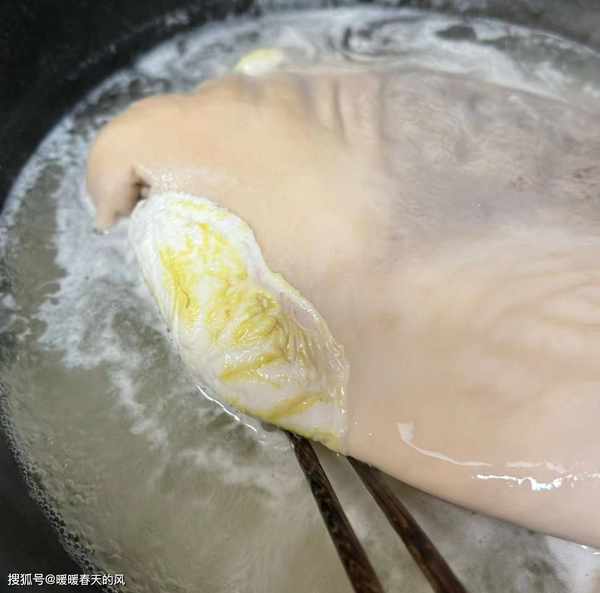 煮過之後,這層膜就能很好的撕下來,刮幹凈