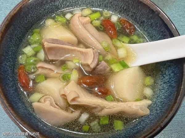材料:豬肚,鐵棍山藥,薑片,白胡椒粒,黃酒,紅棗,枸杞,香蔥