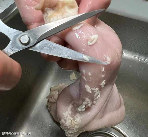 要想豬肚湯喝起來香醇沒有異味,洗豬肚就很重要。豬肚買回來後,裡外先清洗一下,把裡面的肥油盡量剪掉