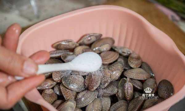 1、花蛤放在盆中,倒入適量的溫水,再添加一勺食用鹽和油浸泡一小時催促吐沙。若是時間不充裕,建議直接將花蛤冷水下鍋。