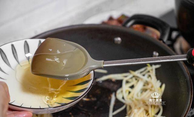 需要先幹鍋炒幹水分,酸筍裡面的味道會揮發出來更香,口感也更脆。