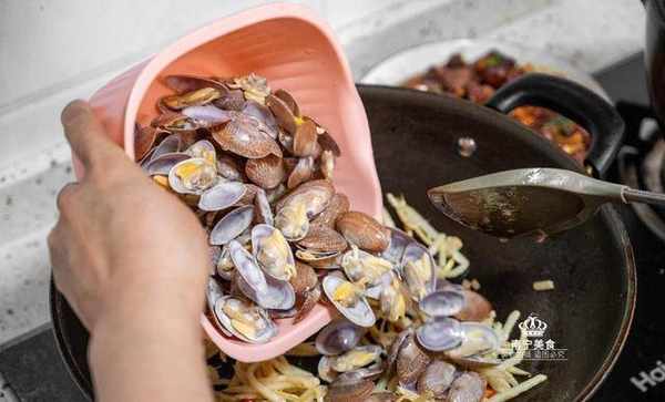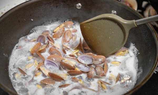 開小火註意觀察,等到花蛤的外殼一張開就立馬關火,避免煮過久,殼內的花蛤肉都剝落瞭。