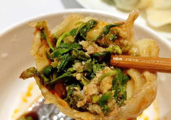 3、然後將剁碎的苜蓿放入攪拌均勻,按照自己的喜好包成餃子,煮熟享用即可