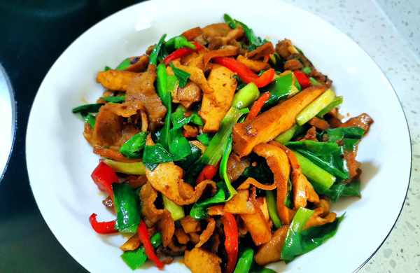 食材:韭菜、五花肉、香幹、紅椒、薑蒜、料酒、鹽、生抽、十三香