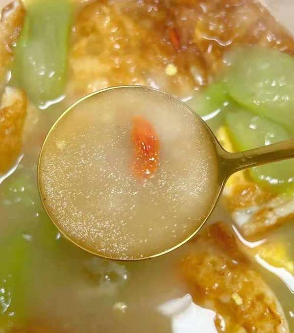 絲瓜煎蛋枸杞湯是春季限定的湯品,成本很低,營養價值不比肉湯低,絲瓜有多種維生素,氨基酸和抗氧化的物質,搭配煎蛋煮一鍋,湯品鮮甜,喝起來不油膩,幫助預防上火,減脂排毒,保持身體的健康。