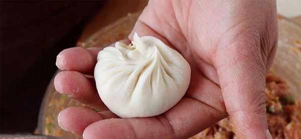 16.現在開始包小籠包,面皮中間放上肉餡,然後一點點捏出褶皺收口,這樣一個小籠包就包好瞭。