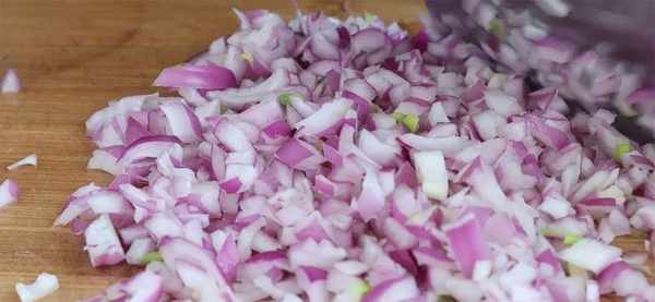 5.再準備一個洋蔥洗凈,先切成絲,再切成丁,然後剁碎一點備用。
