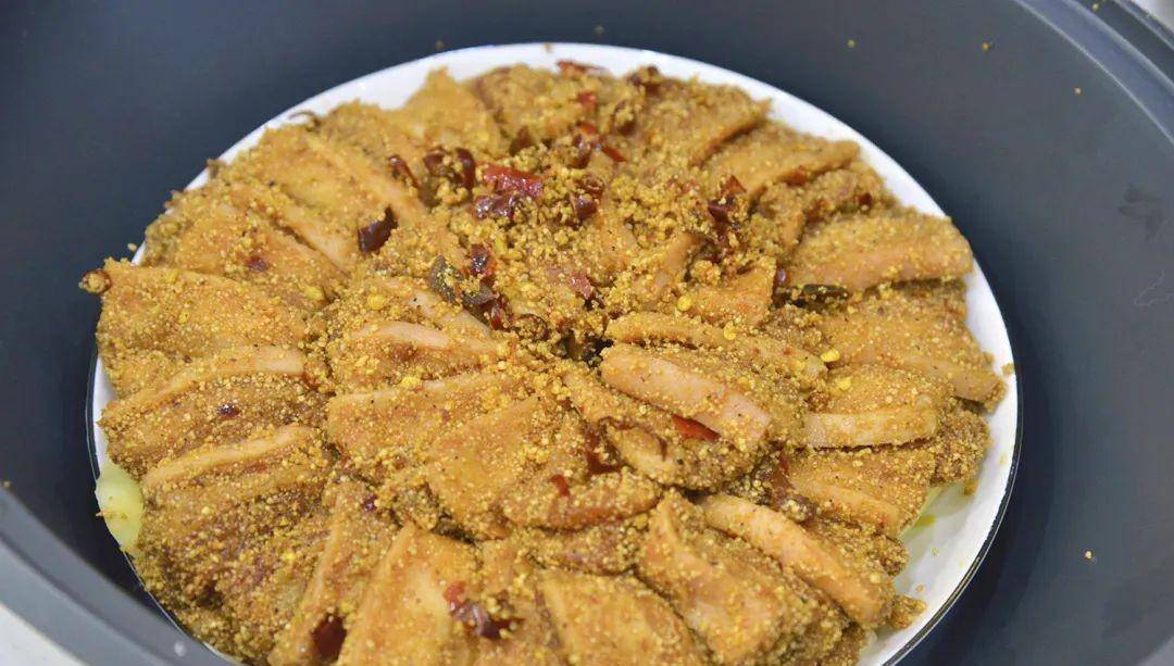時間到,就能吃上粉糯的土豆和軟爛入味的粉蒸肉瞭,超級香!